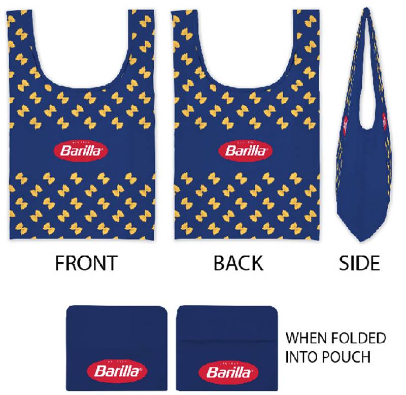 The Farfalle design collapsible bag combines style and practicality with its spacious capacity, holding up to 50 lbs. This versatile bag easily folds down to a compact size for convenient storage, making it perfect for everyday use or travel. When unfolded, it measures 25.5" H x 15.5" W x 6" D, offering ample room for groceries, shopping, or gear. The included pouch (5" H x 5.5" W) allows for easy packing and storage, and when folded, the bag becomes just 0.75" H, ensuring it's always ready to go wherever you need it.