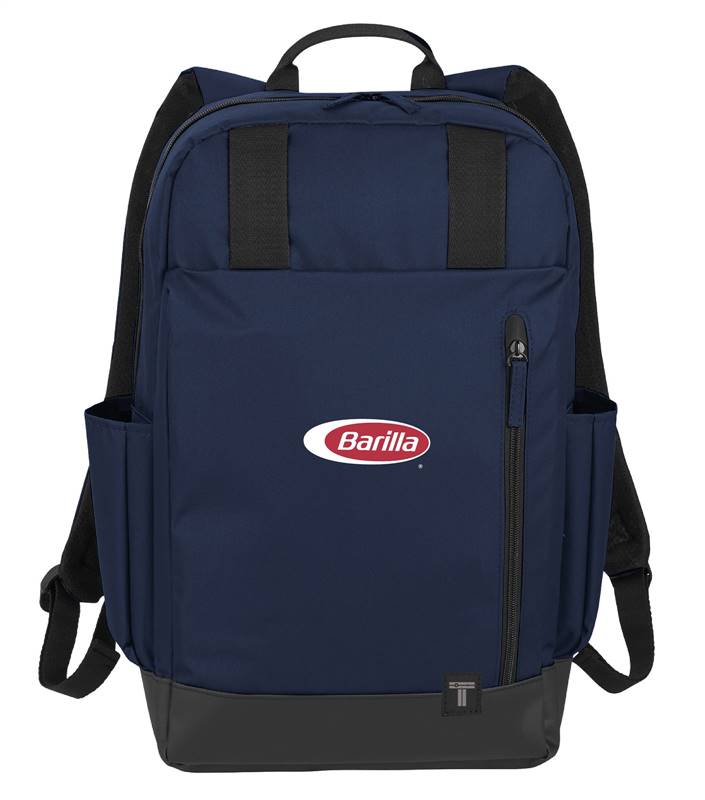 The Tranzip 15" Computer Day Pack helps you navigate your way through the city with style. The daypack design helps get you around town and features a wipe-clean tarpaulin bottom and a large zippered front pocket for quick access items. Top loops to secure a light rain jacket or umbrella. Main compartment holds a tablet and up to a 15.6" laptop. Features an interior mesh pocket and side water bottle pockets. Features the Barilla logo on the front pocket.