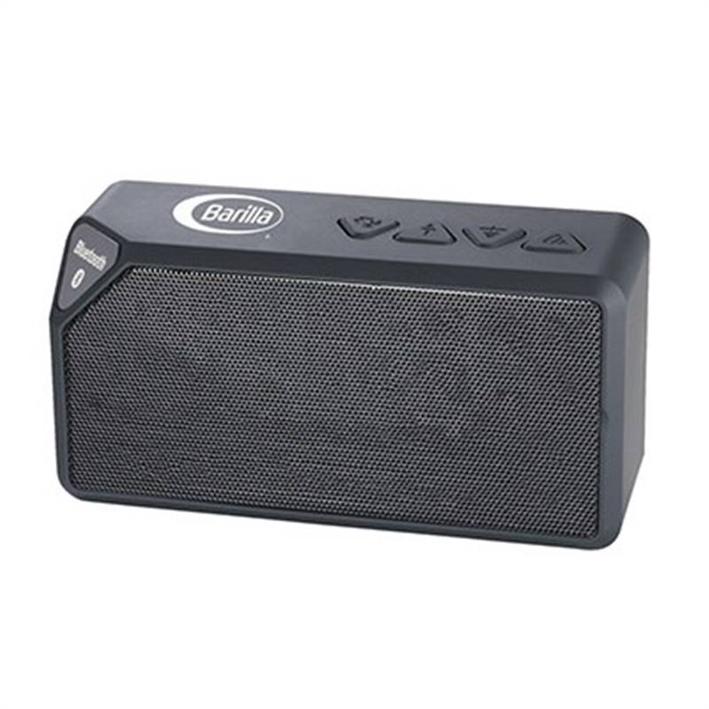 This speaker features quality sound in a small form factor that plays your music or other audio from a Bluetooth enabled device or via the 3.5mm audio input, making it compatible with just about anything that plays music. Bluetooth working range is 10 meters (33 feet). Enjoy up to 2 hrs. of music at max volume on a single charge. It takes 2.5 hrs. to charge the speaker from 0 to 100%. Printed with the Barilla logo.