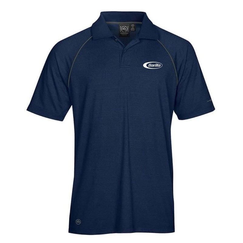 With subtle textured piping accents, this H2X-DRY® polo combines classic sophistication with powerful performance technology to outfit you in style and comfort, whether at work or play. Features: H2X-DRY® Moisture Management; 2-Button Placket; Hem Side Slits; Raglan Sleeves; 1x1 Rib Knit Collar; Contrast Piping; 91% Polyester, 9% Spandex, 5.01oz. Features Barilla logo embroidered on left chest.