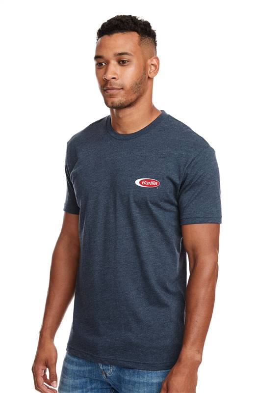 60% combed ringspun cotton/40% polyester jersey. 4.3 oz. Slightly heathered. Fabric laundered for reduced shrinkage. Tear-away label for comfort. Printed with the Barilla logo.