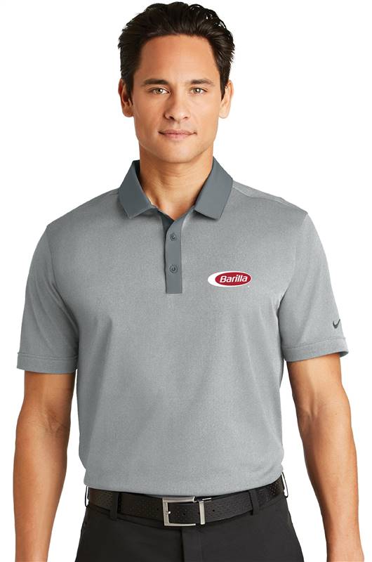An upscale heather effect combined with Dri-FIT moisture management technology makes this polo a first-rate choice for performance and comfort through 18 holes and beyond. Design features include a sleek woven collar and three-button placket and open hem sleeves. A contrast Swoosh design trademark is embroidered on the left sleeve. Made of 4.7-ounce 100% polyester Dri-FIT fabric. Modern fit is slightly tailored through the chest arms and waist. Features the Barilla logo on the left chest.