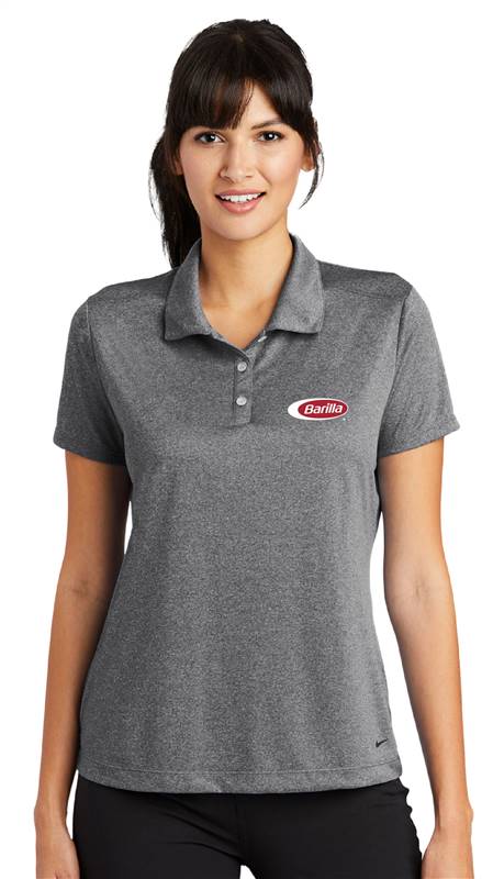 Dri-FIT moisture management technology achieves maximum comfort, while an iconic look gives this pique polo modern style. Design details include a self-fabric collar, dyed-to-match buttons and open hem sleeves. Tailored for a feminine fit with a three-button placket. The contrast Swoosh design trademark is embroidered on the left hem. Made of 4.7-ounce, 100% polyester pique Dri-FIT fabric. Features the Barilla logo on the left chest.